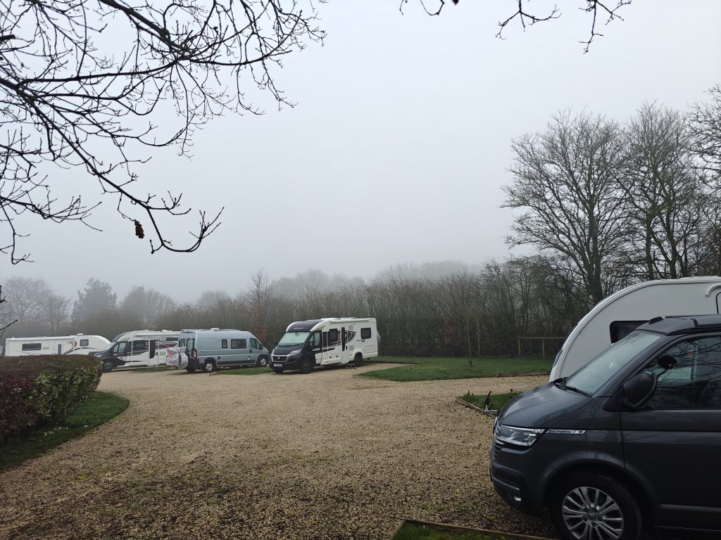 The ferry pitches at Morn Hill are in a second separate section of the campsite where the facilities block is closed during the winter. There’s fresh water and waste facilities but the washrooms and showers are on the main site which is 100m down the access road. There were about 40 outfits on the site (including the ferry pitches) and only 3 caravans. The demographics are changing rapidly.