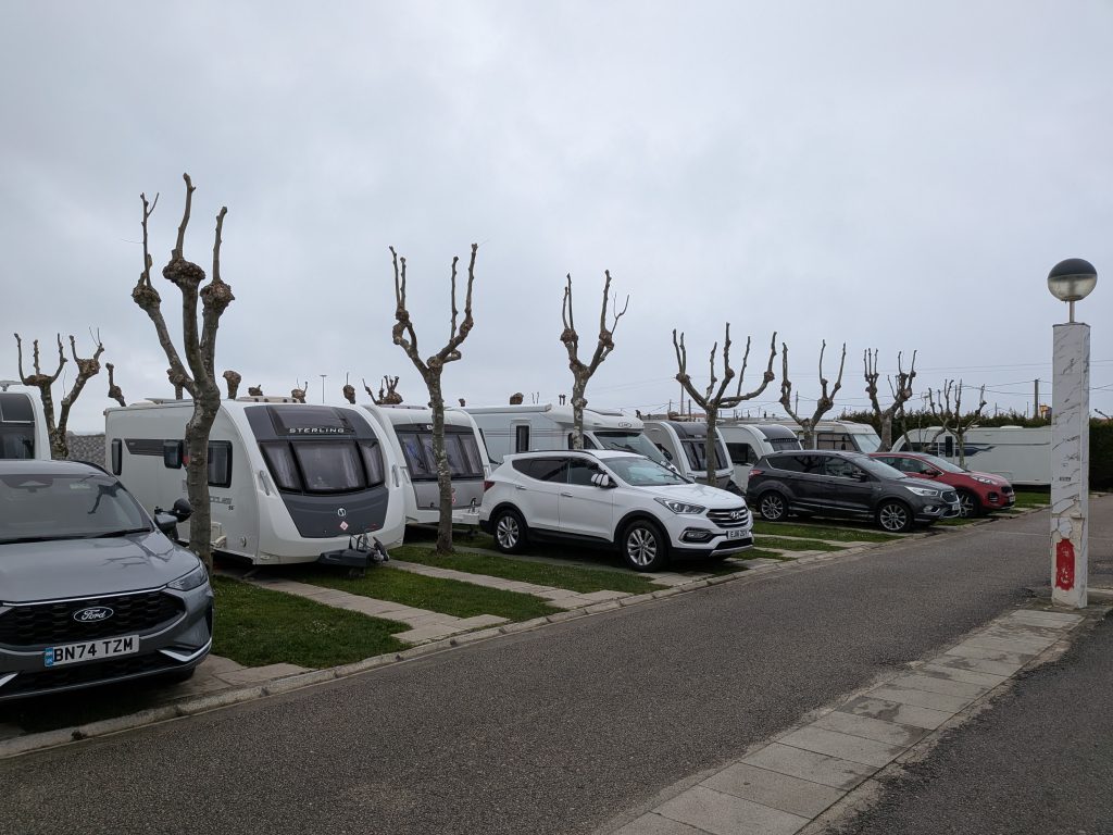 An easy five hour (225 miles) relaxed tow had us on-site at Camping Virgen del Mar, near Santander, by mid-afternoon on Thursday. Weather at the beach was cold and breezy and later in the evening, the heavens opened.