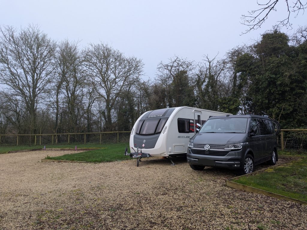 It turns out there wasn’t quite enough room to reverse onto the end pitch so I had to turn the outfit around on the next pitch before reversing onto our chosen one. I then finally realised there wouldn’t be quite enough room to leave it hitched up for the night so off came the caravan… The whole process took about 20 minutes and I really should have made the simple decision to unhitch at the outset.